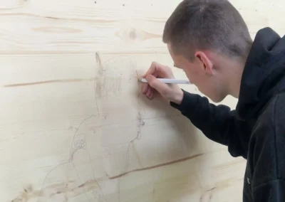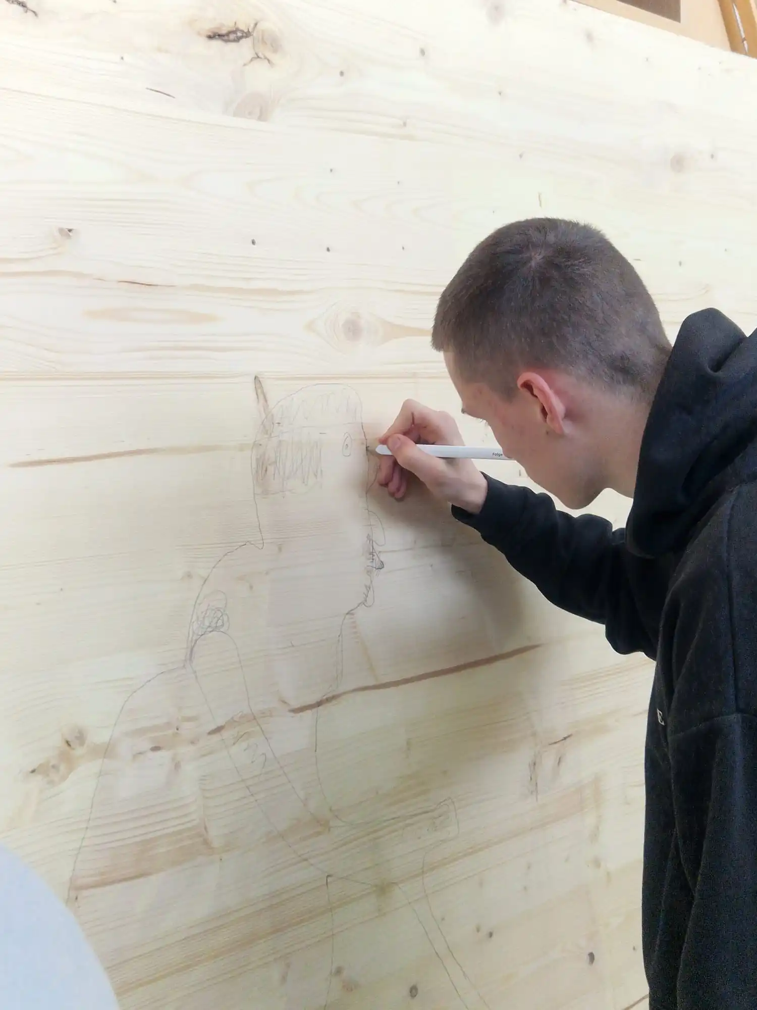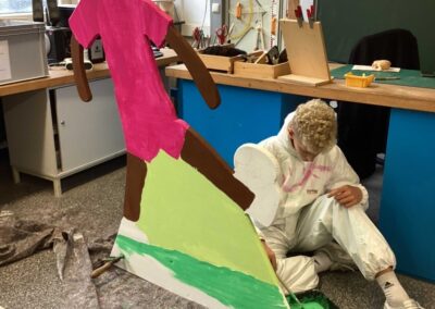 The figure depicts a young man in his twenties, without clearly recognizable facial features. This is no coincidence, but a deliberate artistic device to show that identity and value are not tied to external features. This figure is Noah, but it could also be anyone else. She wants to express that Noah is dealing with issues such as diversity and toxic masculinity, questioning the superficiality of social expectations.