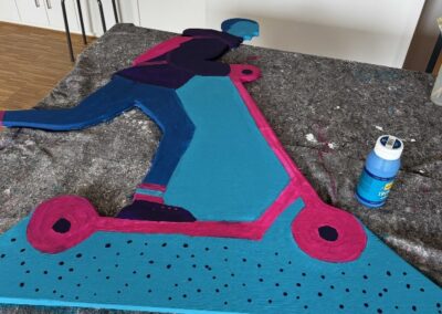 The designed figure of a boy on a scooter embodies the diversity of our community. “We are different” – this is reflected in our different paces and looks, our different biographies and abilities, our ages and the colors of our cultures. But despite these differences, there is something that unites us all: The path we walk together.