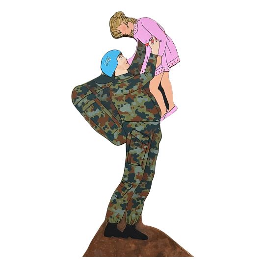 For our nativity scene figure, we chose a blue helmet soldier, i.e. a soldier who is tasked by the United Nations (UN) with restoring peace in conflict regions and protecting the civilian population. We can imagine how stressful this must be and the fears that everyone has.